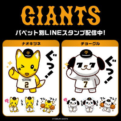 「読売ジャイアンツ」選手パペットシリーズインクルーズ描き起こしのキャラ別ver.のLINEスタンプ第2弾がインクルーズより2点同時に配信開始!