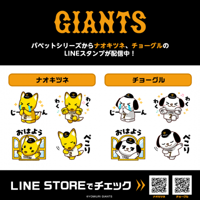 記念すべき第2弾は、吉川尚輝選手の「ナオキツネ」と、長野久義選手の「チョーグル」の2点の同時配信となり、どちらも株式会社インクルーズが描き起こした特別なデザインとなっております。