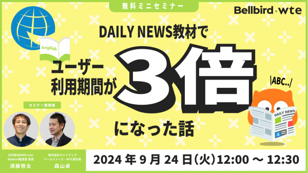 【9/24(火)】デイリーニュース教材でユーザー利用期間が3倍になった話(DMM英会話×ライトアップ ミニセミナー)