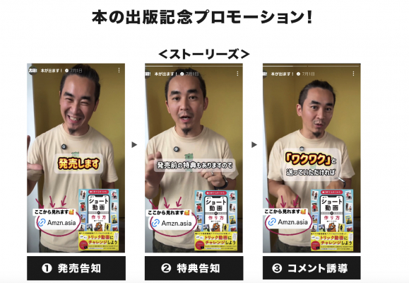 ・本のプロモーションへの活用として、リールなどで【ワクワク】とコメント誘導し、自動DM返信で販売予約サイトへ案内