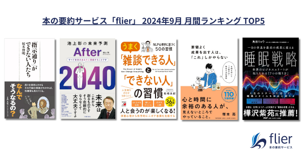 累計会員数119万人を突破した本の要約サービス「flier(フライヤー)」を運営する株式会社フライヤー(本社:東京都千代田区、代表取締役CEO 大賀康史)は、2024年9月のビジネス書月間ランキングを発表しました。