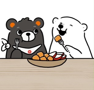 ハルクマ描き下ろしの動画では、シロクマシンプルと福熊くんが出会い、一緒にフルーツを食べたり写真を撮ったりと楽しく過ごす様子が描かれています。