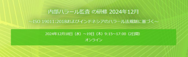 【矢野経済研究所 研修】インドネシア政府公認研修「内部ハラール監査の研修」12/18〜19 オンライン開催