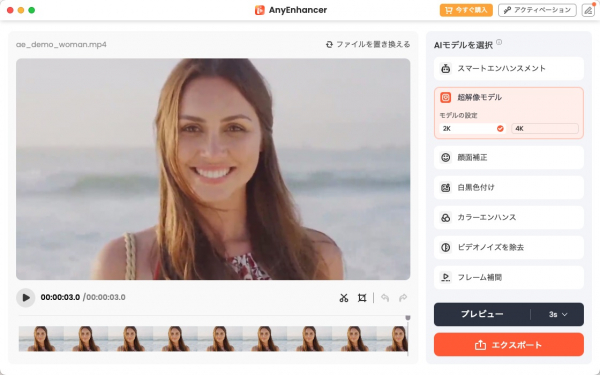 三、AnyEnhancerで動画の画質を最大限に向上!4K変換のベストソフト