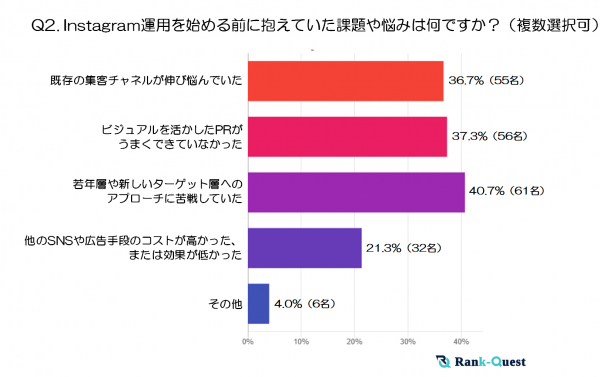 最も多かった回答は、「若年層や新しいターゲット層へのアプローチに苦戦していた」(40.7%)でした。若年層の利用率が高いInstagramを活用することで、従来のチャネルでは十分にリーチできていなかった層へ訴求しやすいという期待がうかがえます。