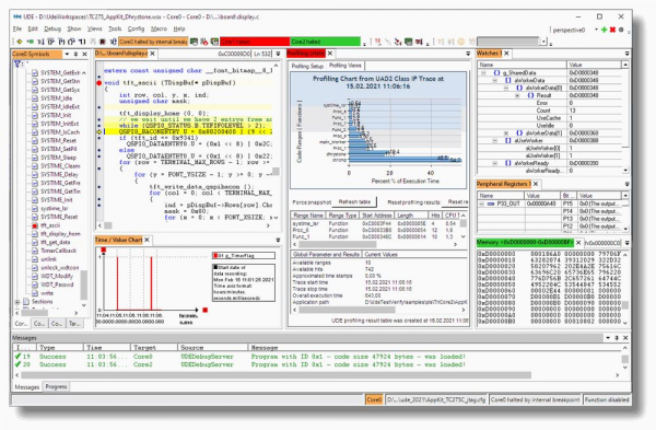 統合開発環境UDE(デバッグ、トレース等)、包括的なInfineon「TriCore AURIX TC32, TC33, TC34, TC35, TC36, TC37, TC39, TC3x」サポート