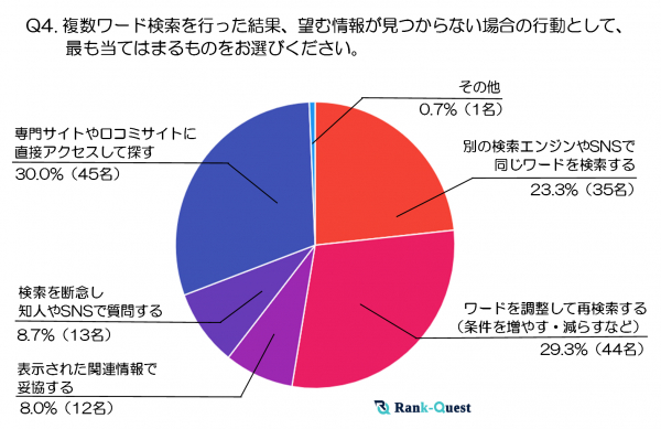 一方、「表示された関連情報で妥協する」(8%)や「検索を断念し知人やSNSで質問する」(8.7%)という回答は少数派でした。