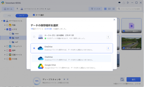 3.目的のファイルを選択し復元します。例えばGoogle DriveまたはDropboxなどのクラウドディスクに保存することを検討してください。