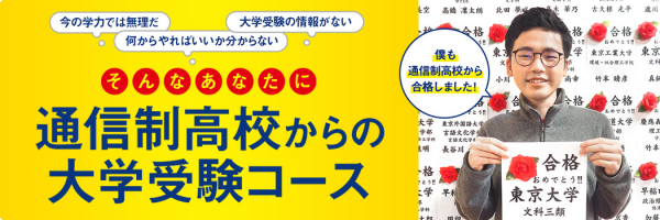 大学受験予備校、四谷学院には「高卒生コース」「現役生コース(高3・高2・高1)」のほか、「通信制高校からの大学受験コース」を設置しており、現在、通信制高校に在籍している高校生を対象に、大学受験指導を行っています。