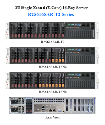 新製品 Xeon 6700E CPU塔載, 16*2.5"SAS/SATA/NVMeベイ, 2*10GbE, G5 PCIe/CXL2.0バス 2Uサーバー「R25616SAR」シリーズのご紹介