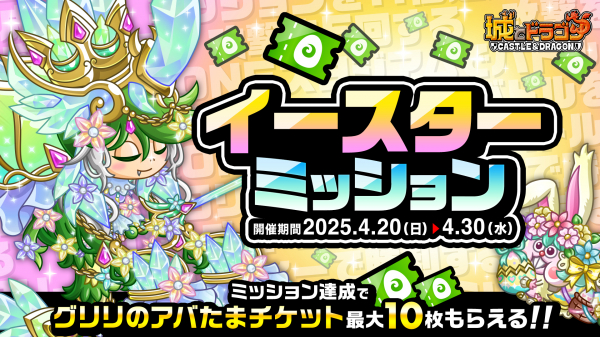 『城とドラゴン』で4月20日(日)より「イースターミッション」開催中!アバたまチケット最大10枚などをGET!