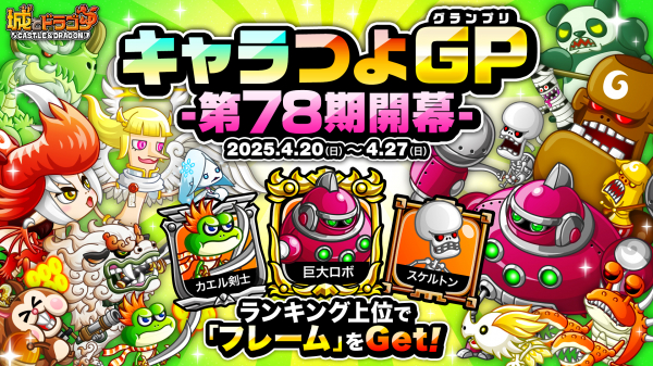 4月20日(日)より「イースターミッション」を開催中!クリアすることでグリドラガールの新たな激レアお着替えなどがラインナップに加わったアバたまに挑戦できる「グリリのアバたまチケット」最大10枚などが入手可能となっています。また、“キャラつよP”を競う「キャラつよグランプリ 第78期」も開幕!今回は巨大ロボやカエル剣士など15キャラが対象となり、ランキング上位者にはキャラアイコンを装飾できる“フレーム”が贈られます。