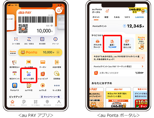 「au PAY ポイント運用」はau PAY アプリからのご利用が便利です。また、「au Ponta ポータル」のトップページからも簡単にご利用いただけます。