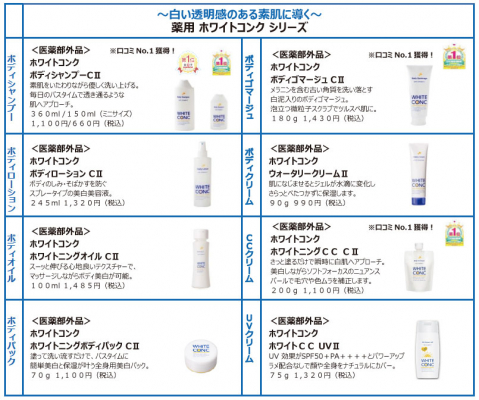 美しい白い肌をキープしたい方に最適なボディ用の薬用美白化粧品「ホワイトコンク」シリーズを展開し、