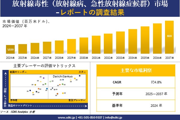 放射線毒性(放射線病、急性放射線症候群)に関する詳細な市場調査報告書は以下のリンクから入手できます: