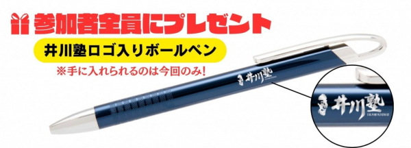 ご参加いただいた皆様には、非売品の「井川塾」ロゴ入りボールペンをプレゼントいたします。