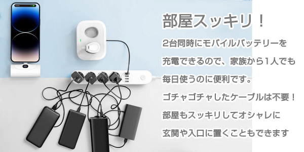 置くだけ充電、いつでも満タンパワー!充電ドック付きセット! 「WSTステーション型2連モバイルバッテリーB」ミスターカード株式会社