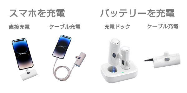 ・パススルー充電機能でスマホとバッテリーの同時充電可。