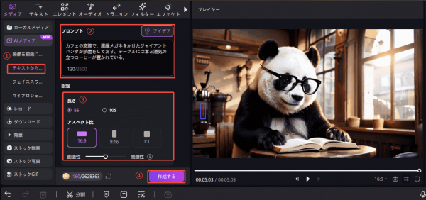 1.ソフト内で「AI動画生成」>「テキストから作成」を選択