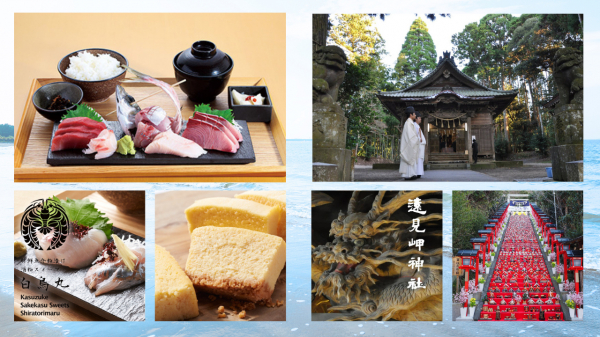 本ツアーでは、御宿にある「岩瀬酒造」(代表銘柄:岩の井)と、勝浦にある「東灘醸造」(代表銘柄:鳴海〈なるか〉)の2つの老舗酒蔵を巡ります。さらに千年以上の歴史を持つ「遠見岬神社」を参拝し、心願成就を祈願。ランチでは御宿にある人気店「白鳥丸」にて、新鮮な地魚お刺身や「岩の井」の酒粕を使ったオリジナルメニューと地酒の特別なペアリング体験ができます。
