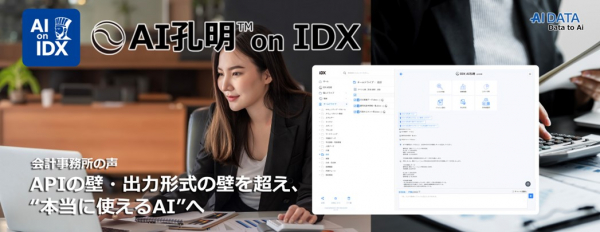 こうした課題に対し、AIデータ社の「AI孔明TM on IDX」は、会計システムと共存する新たな生成AI利活用の道として、 “国産ベースの独立型データAI基盤”として、新たなソリューションを提示しています。