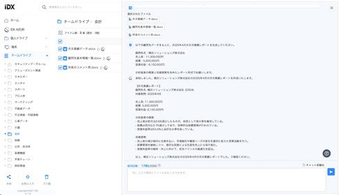 多くの会計ソフトには、外部連携を制限するAPIの壁があります。また、出力形式が画像や特殊なPDFであることも多く、AIによる自然言語処理に不向きです。「AI孔明TM on IDX」は、こうした形式の制約を超えるためのファイル前処理・構造化機能を備えており、月次報告書、決算報告、申告資料などをAIが“読める・活かせる”状態に変換する処理を自動で行います。