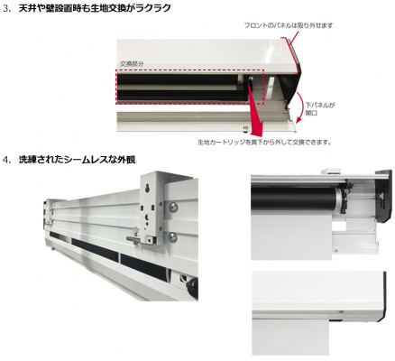 3. 天井や壁設置時も生地交換がラクラク