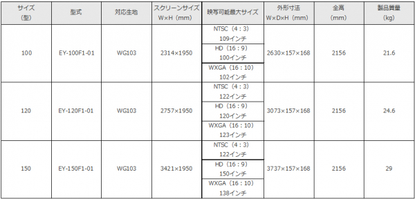 ラインアップは16:9基準の100インチ、120インチ、150インチの3種類。