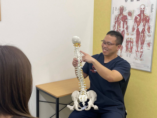 問診 → 手技・骨格矯正・ストレッチ体験 → お悩みの症状に対するアドバイス