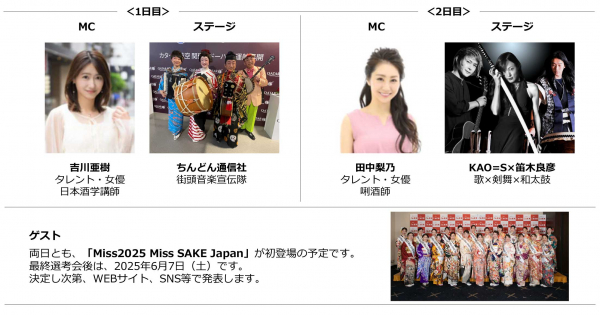 ゲストは、「2025 Miss SAKE Japan」が初登場の予定です。最終選考会後、WEBサイト、SNS等で発表します。