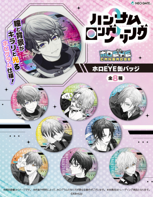 『ハンサムロンダリング』より 瞳と背景が“キラリ”と光るホログラム仕様となった【ホロEYE缶バッジ】が登場! ポップでオシャレな缶バッジは必見です!