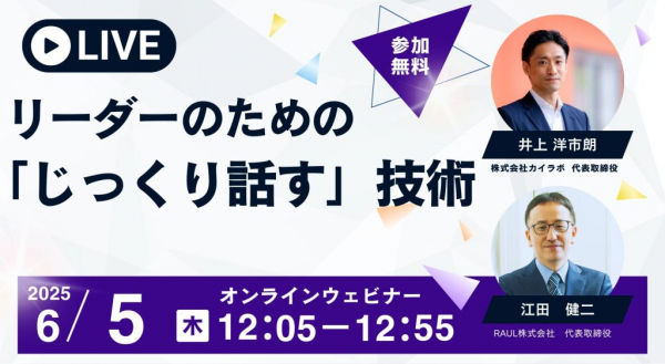 ウェビナー 『リーダーのための「じっくり話す」技術』6月5日(木) RAUL株式会社代表 江田健二が出演いたします