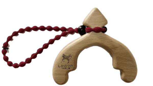 足つぼ棒は、「鹿の角足つぼ棒(木製)」と命名し、足つぼだけでなく全身のツボも押せる鹿の角のような形状をしています。こちらは意匠登録申請済みです。