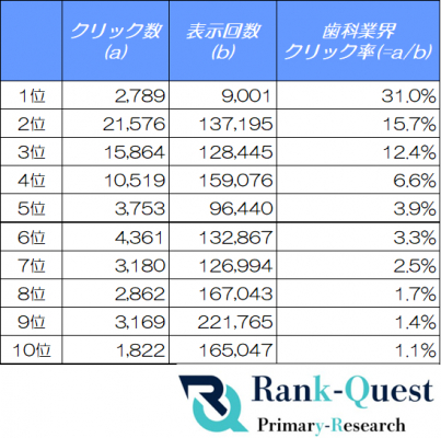 歯科業界のSEOクリック率データが示す『上位表示の絶対的価値』と『その先にある勝負』(SEO会社ランクエスト調べ)