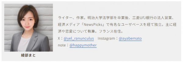 インタビューと執筆は、ビジネス系の人物取材、恋愛系の取材を得意とする、ライター・作家の綾部まとさん。現代ビジネス、集英社オンライン、週刊SPA!など、様々なメディアで活躍する新進気鋭の書き手です。