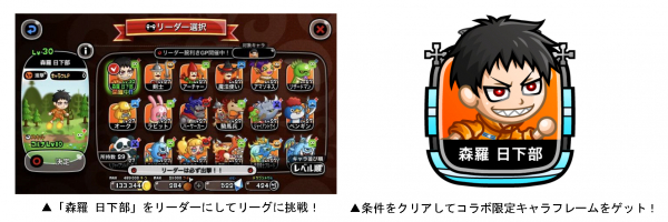 5月22日(木)より、TVアニメ『炎炎ノ消防隊』コラボ限定キャラ「森羅 日下部」をリーダーにして「キャラフレP」を競う、「リーダー腕利きGP」の2回戦目が開催!ランキング上位者や条件を達成した方には、コラボ限定「キャラフレーム」が贈られます。「森羅 日下部」をリーダーにして期間中のリーグに挑みましょう!
