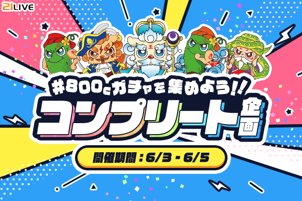 【21LIVE】6月3日(火)より『800Cガチャを集めよう!!コンプリート企画』がスタート!コンプリート達成で21LIVEオリジナルグッズをプレゼント!