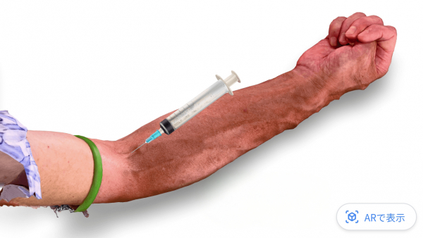 実在の人物を撮影したデータ(フォトグラメトリ)を活用することで、腕の血管や皮膚の質感を限りなくリアルに再現。まるで目の前に患者さんがいるかのような臨場感でトレーニングできます。