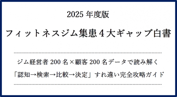 【無料配布】2025年版フィットネスジム集患4大ギャップ白書 〜ジム経営者200名×顧客200名データで読み解く「認知→検索→比較→決定」すれ違い完全攻略ガイド〜(SEO会社ランクエスト調査)
