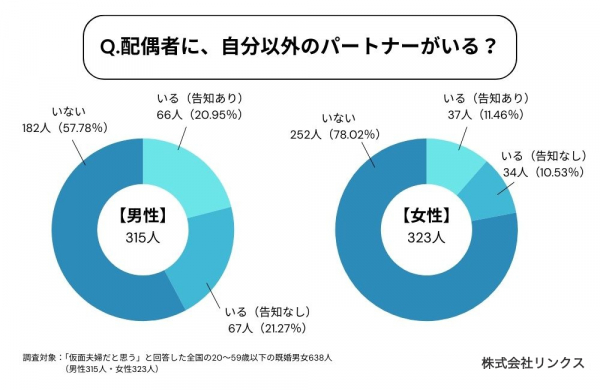 第3報となる今回は、「仮面夫婦のメリット・デメリット」、さらに「配偶者に別のパートナーがいるか」について調査。表には出ない夫婦の現実を掘り下げます。