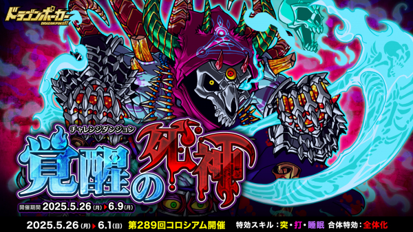株式会社アソビズム(本社:東京都千代田区、代表取締役:大手智之)は、App Store・Google Playにて好評配信中のリアルタイム合体カードバトル『ドラゴンポーカー』で、2025年5月26日(月)よりチャレンジダンジョン「覚醒の死神」を開催いたします。