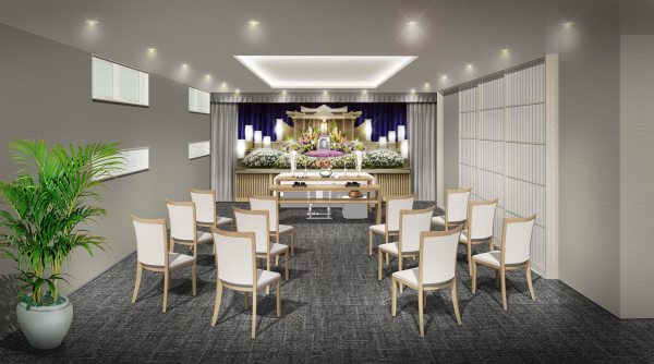 施設内容:式場30席、会食16席、遺族控室2室、導師控室