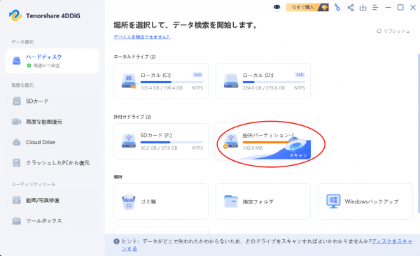 Tenorshare 4DDiGはデータ復旧の専門家です。WindowsとMacに対応しており、様々な状況で失われたデータを復元することができます。AI技術を使用して、失われた動画や破損した動画を復元可能です。