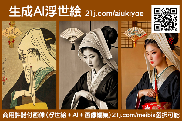 ・独自のデジタル編集技術により、AI浮世絵画像を改変・改造・編集を加えた画像。