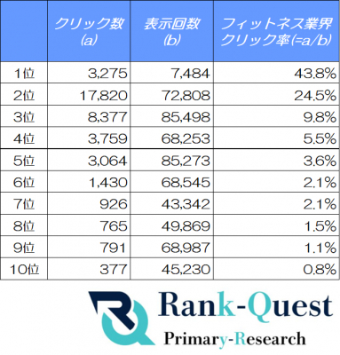 フィットネス業界のSEOクリック率を順位別に徹底分析!(SEO会社ランクエスト調べ)