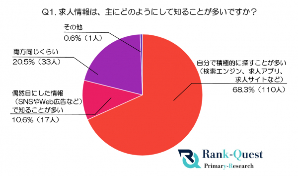 そこで、【SEO対策】で検索順位No.1を獲得した実績(注)を持つランクエスト(https://rank-quest.jp/column/column/how-to-seo/ )は、過去1年以内に転職活動で求人情報を探した経験がある161名を対象に、求職者が求人情報をどのように収集しているのかについて独自のアンケート調査を実施しました。本記事では、以下の3つの視点から調査結果を詳しく解説します。