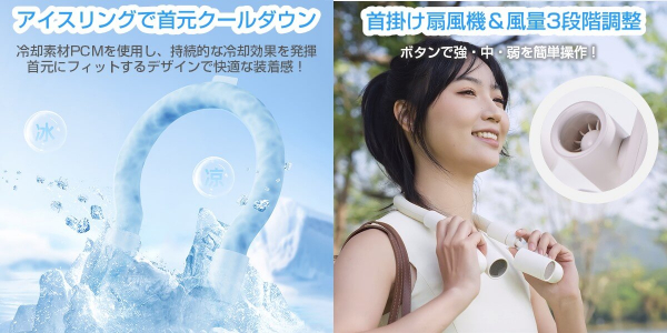 ◎ アイスリング × 首掛け扇風機のハイブリット冷却アイテム