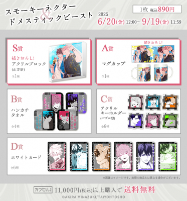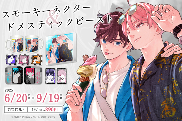 大洋図書×インクルーズ ミナヅキアキラ先生の「スモーキーネクター&ドメスティックビースト」が限定描き下ろしイラストにて「カワセルくじ 乙女部」で販売開始!