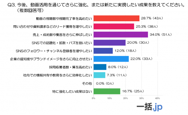 一方で、「特に強化したい成果はない」と回答した人も16.7%おり、現状の動画活用で満足している、もしくは課題意識が明確でない企業も一定数存在することがわかります。