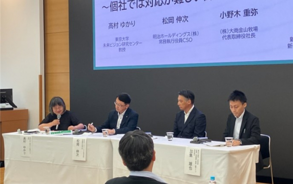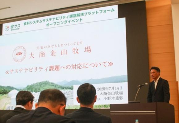 総合食肉業の株式会社大商金山牧場(本社:山形県東田川郡庄内町、代表取締役社長:小野木 重弥)は、2025年7月14日(月)に開催された「食料システムサステナビリティ課題解決プラットフォーム(食サス)」のオープニングイベントにて、サステナビリティ課題の対応について当社代表取締役社長の小野木が講演し、他講演者とのパネルディスカッションを行いました。